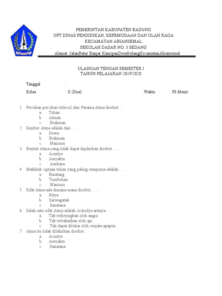 Bank soal uts agama hindu sd kelas 1 6 semester 1 k13 berikut ini adalah file tentang bank soal uts agama hindu sd kelas 1 6 semester 1 k13 yang bisa bapakibu unduh secara gratis dengan menekan tombol download pada tautan link di bawah ini. Mathematics sport implementasi kurikulum 2013 edisi tahun. Soal uts pts pai kelas 7 semester 2 kurikulum 2013 … Download soal pts uts pendidikan agama islam kelas 7 semester 1 smp mts kurikulum 2013 tp 2020 2021 sobang 2. Soal uts matematika kelas 7 semester 2 kurikulum 2013 dan kunci jawaban.