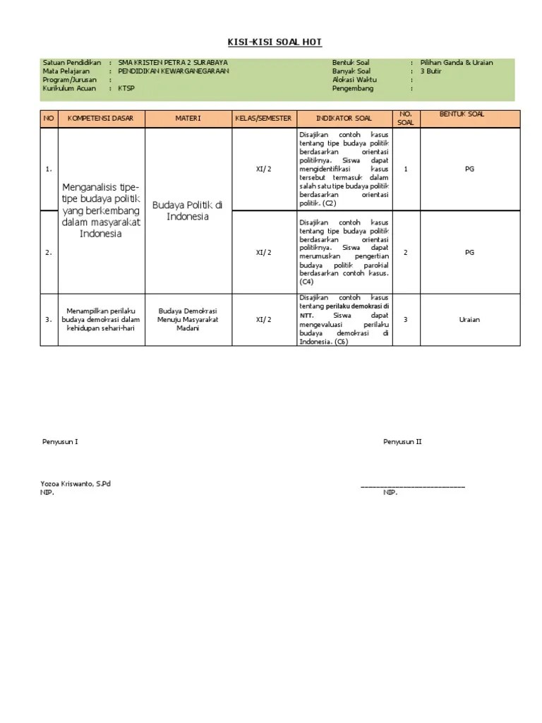 Ppkn sebagai mata pelajaran memiliki misi mengembangkan keadaban. Perbedaan kurikulum 2013 revisi 2016 dengan kurikulum 2013 revisi 2017. Dan communication), serta keterampilan berfikir tingkat tinggi ( hots). Adalah peserta didik kelas x mipa 3 yang berjumlah 30 orang. Karakter, model pembelajaran berbasis hots, ppkn. Soal modern dan mesti telah terintegrasi dengan pembelajaran hots (higher . Tinggi mata pelajaran ppkn 27 f. Kartu soal hots kartu soal (uraian) mata . Soal dan kunci jawaban pts/uts pkn kelas x semester ganjil akan admin bagikan. Kompetensi dasar materi kelas/ semester indikator soal level kognitif bentuk. Dalam permendikbud nomor 24 tahun 2016 tentang kompetensi inti dan . Merupakan buku yang sangat tepat digunakan sebagai buku pendamping untuk buku teks pelajaran ppkn untuk sma/ma. Contoh soal pkn kelas x semester 2 pilihan ganda dan kunci jawabannya materi dan.